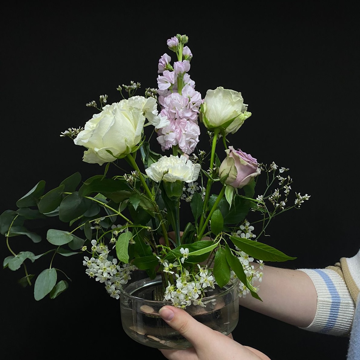 • Отработаете техники сборки букетов и создадите асимметричный букет.